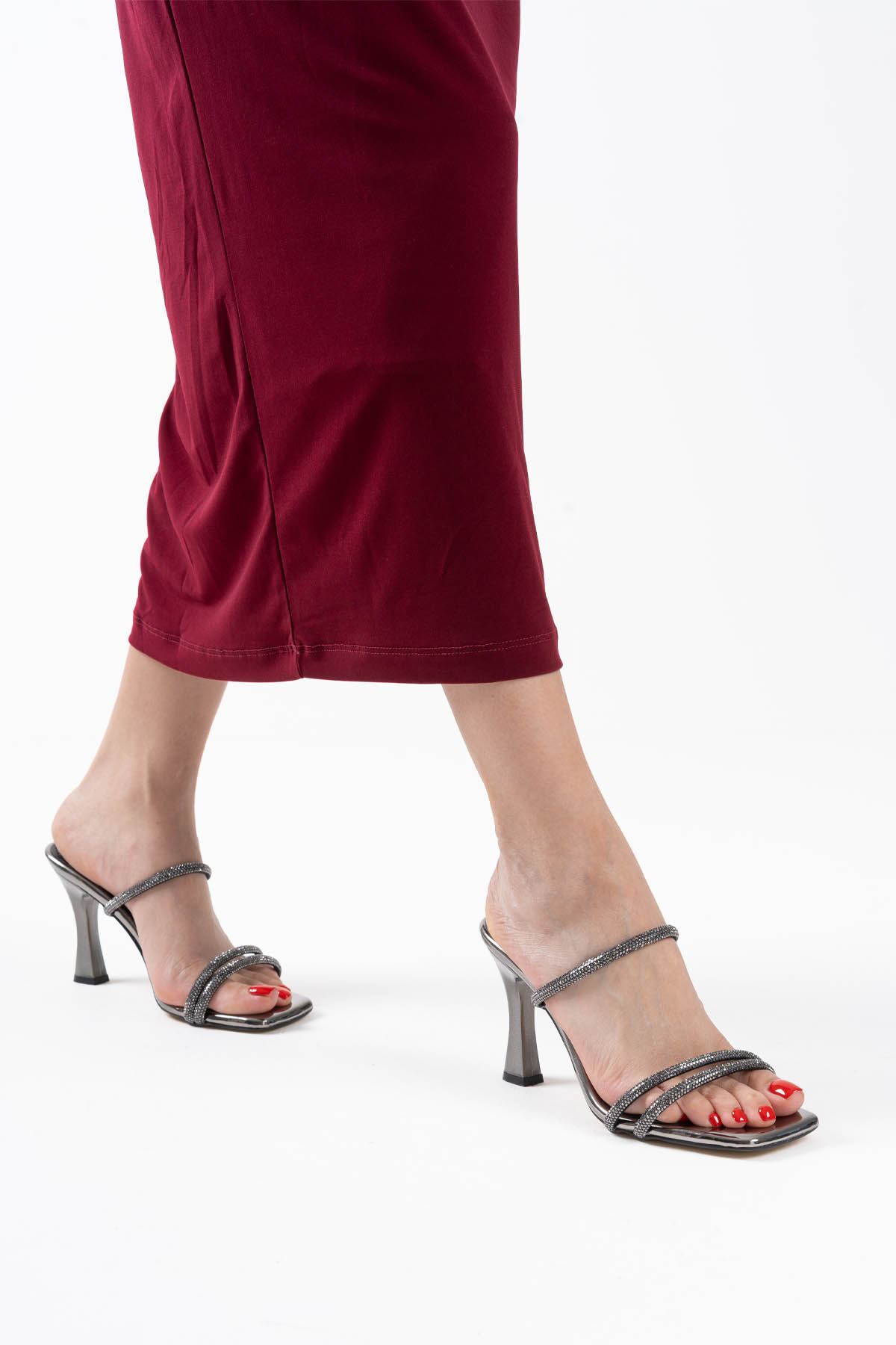 Gümüş Ayna Taşlı Kadın Topuklu Terlik TR20MY01E