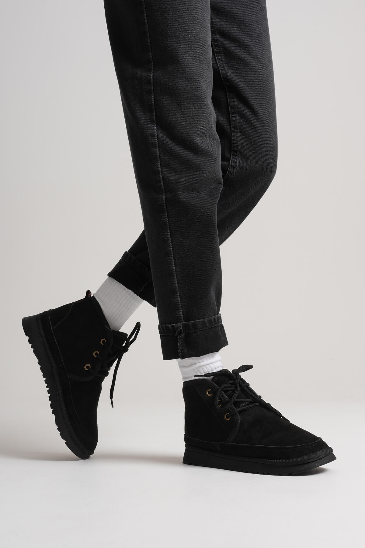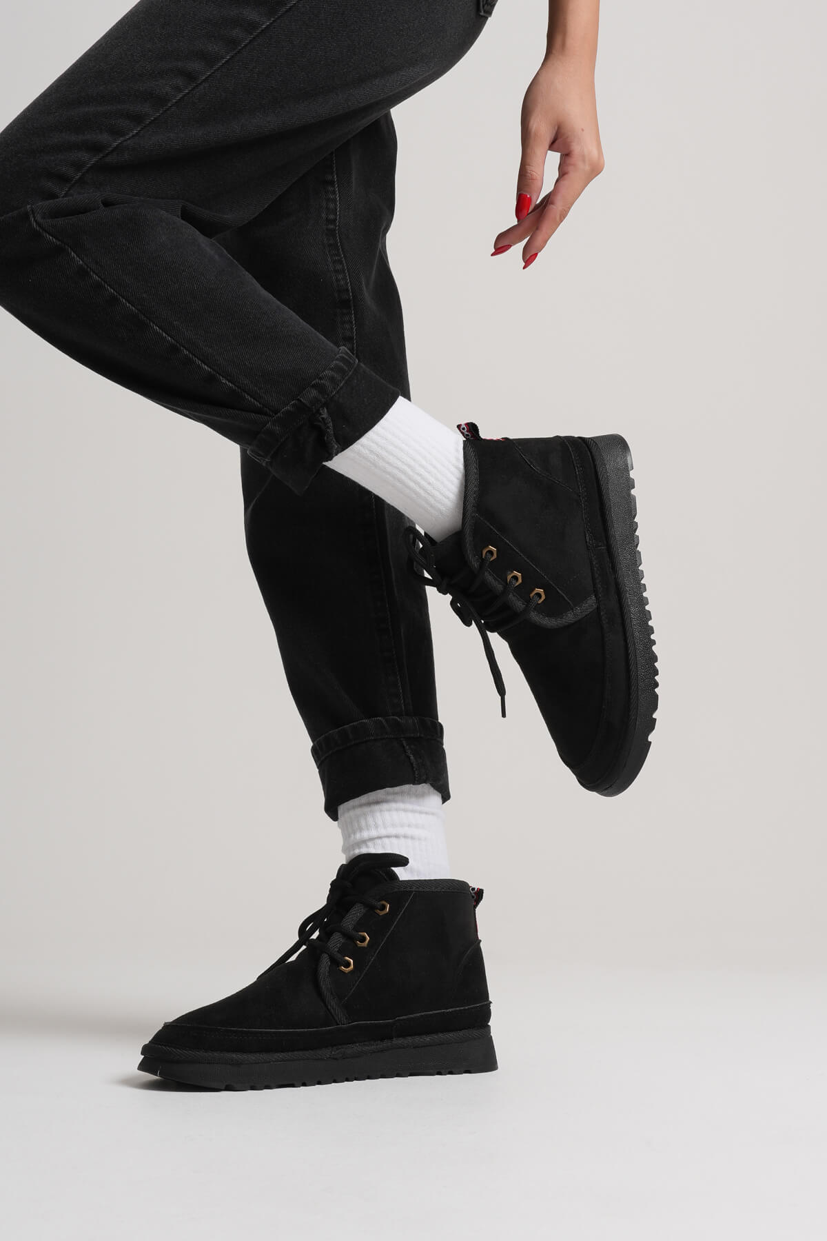 <h3 data-end="129" data-start="108"><strong data-end="127" data-start="112">Siyah</strong></h3><p data-end="444" data-start="130">Siyah modeli, zamansız şıklığı modern dokunuşlarla buluşturur. Su geçirmez süet materyali sayesinde soğuk ve yağışlı günlerde koruma sağlarken, iç kısmındaki kürklü astar gün boyu sıcaklık ve konfor verir. Kaymaz tabanı ile güvenli adımlar atmanızı sağlarken, siyahın asil duruşu her kombinle uyum yakalar.</p><p data-end="464" data-start="446"><strong data-end="462" data-start="44