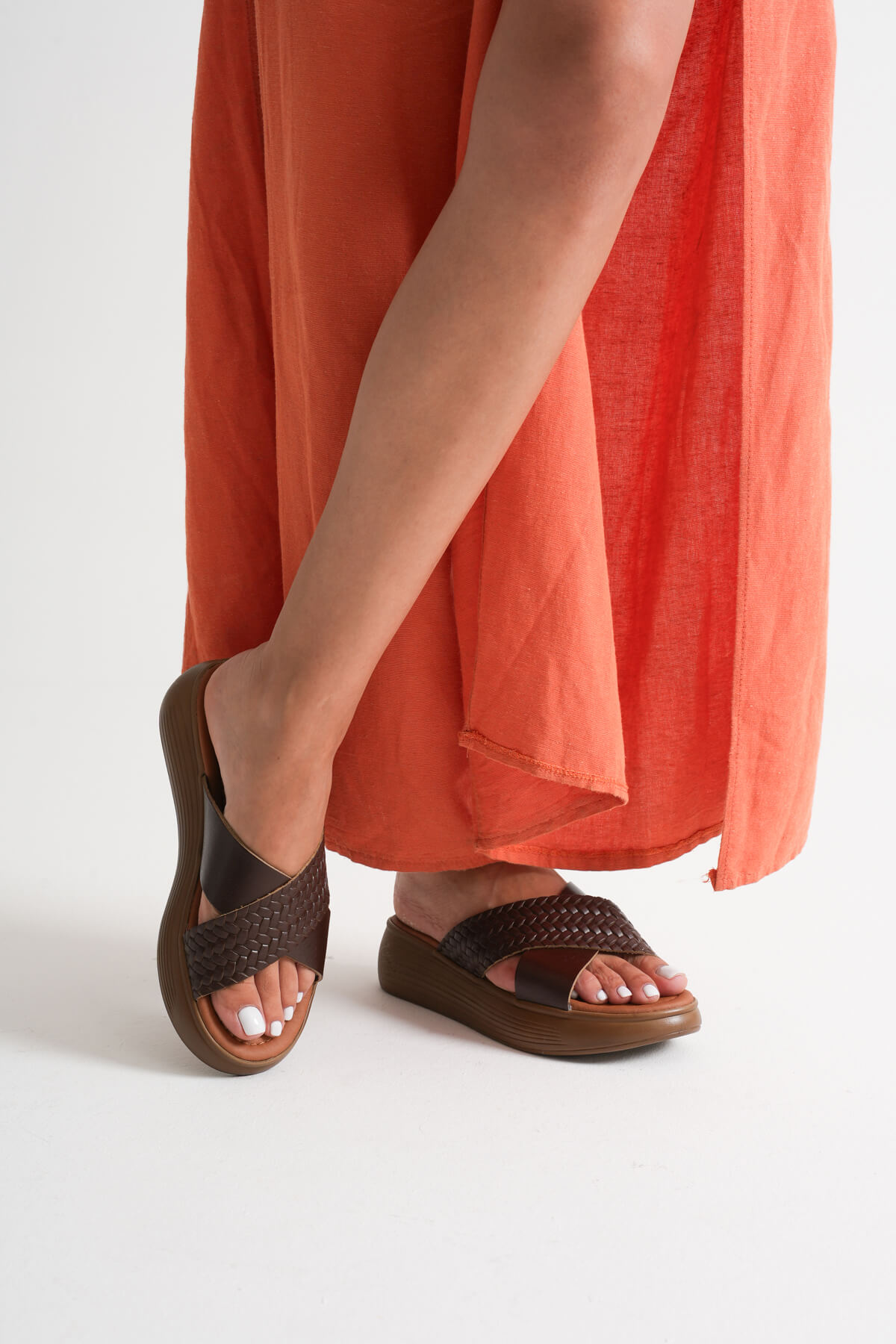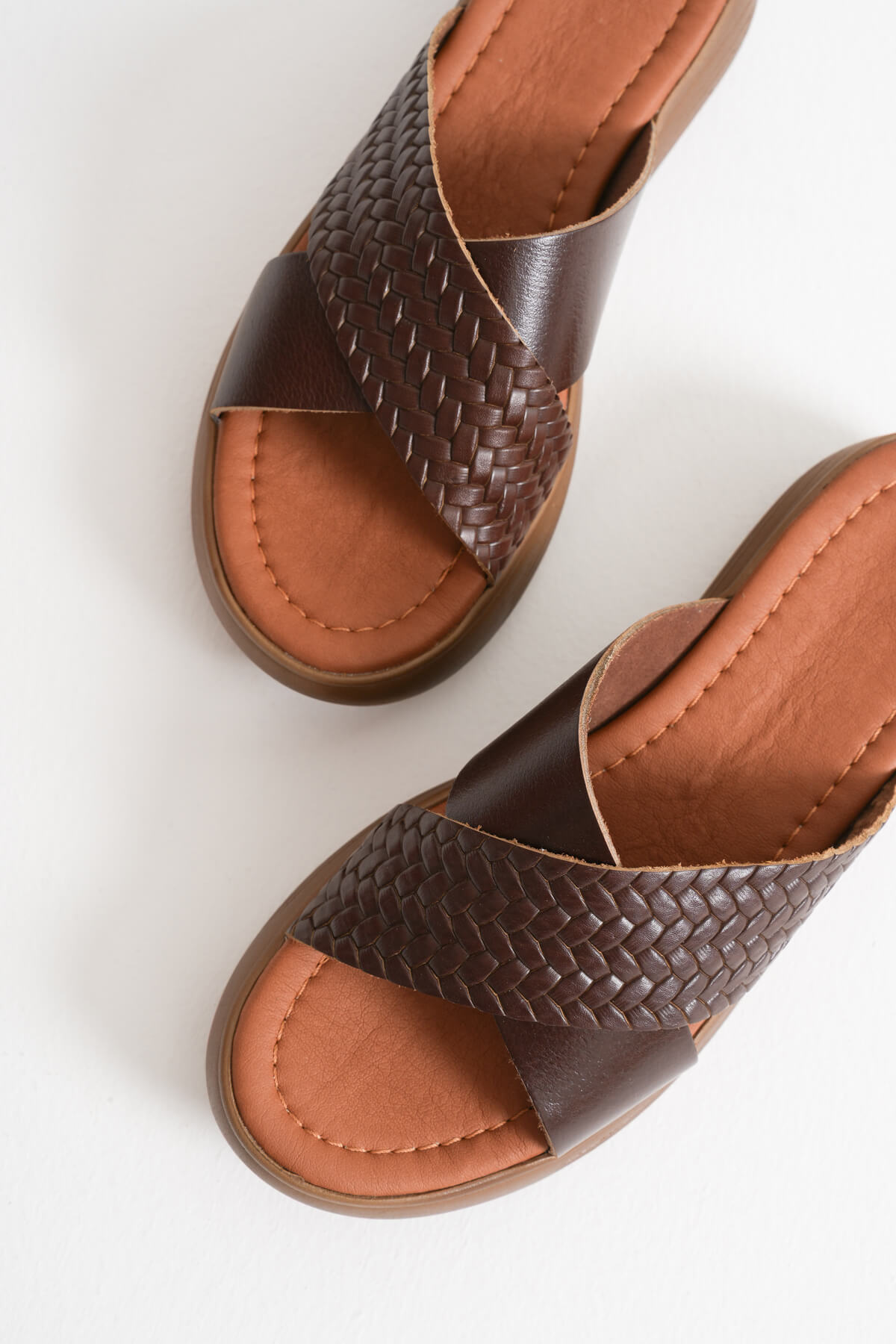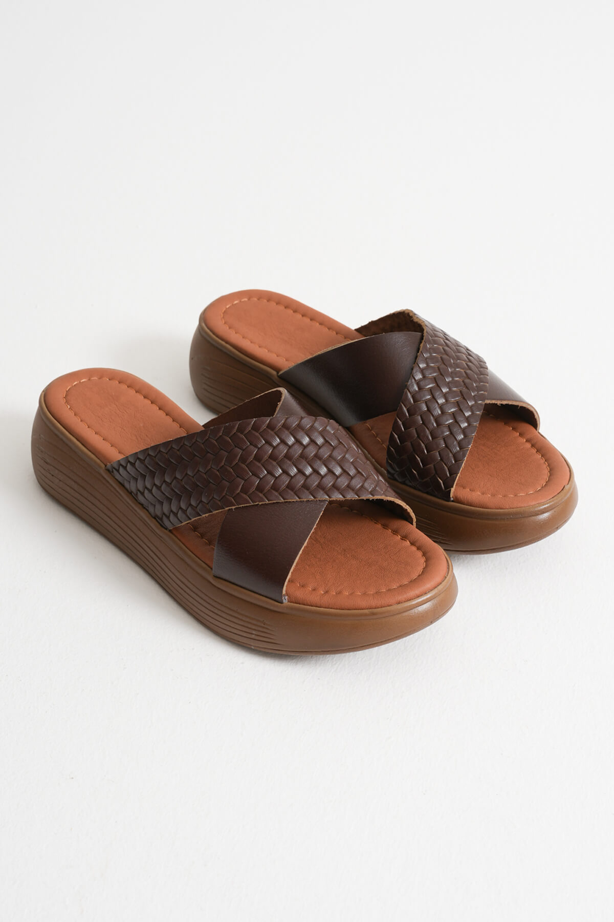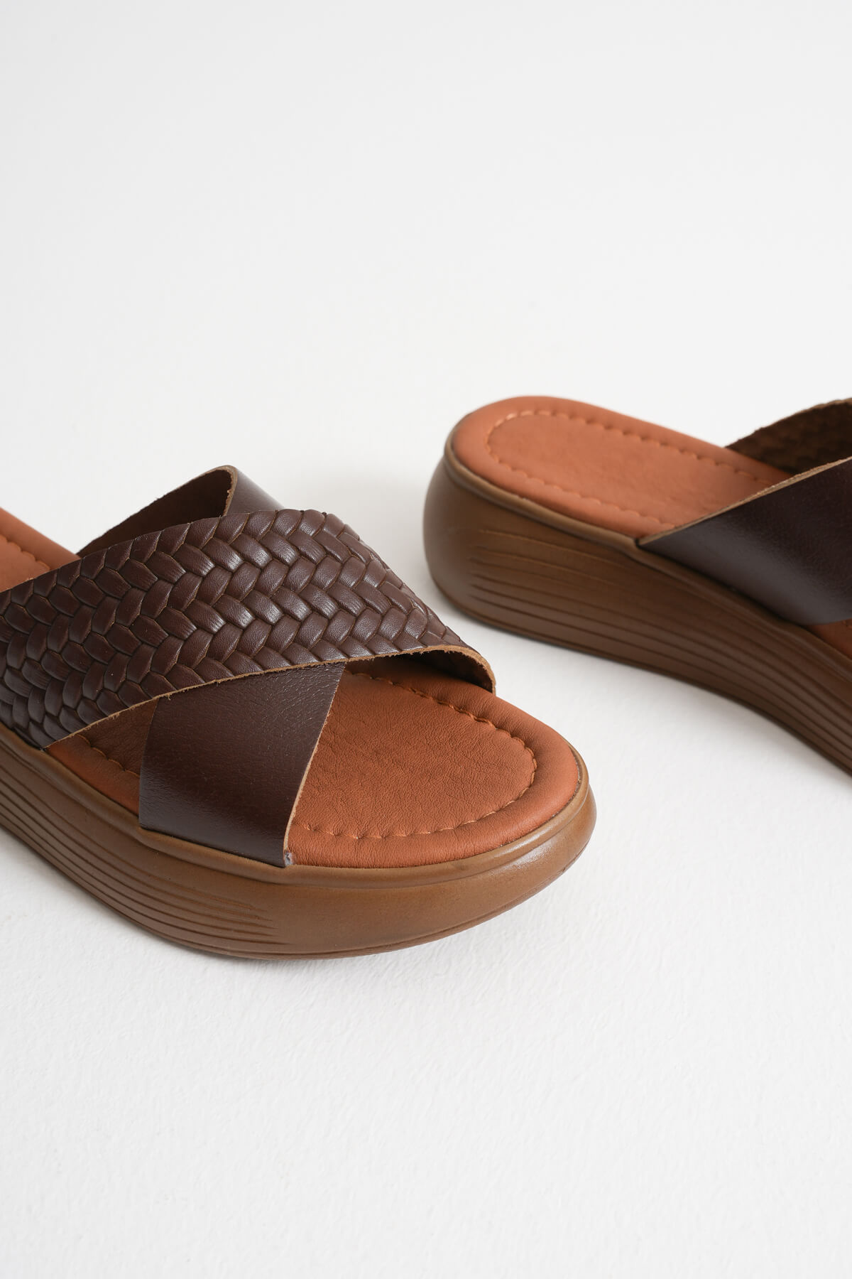 Acı Kahve Örgü Desenli Hakiki Deri Terlik TR31MY53K