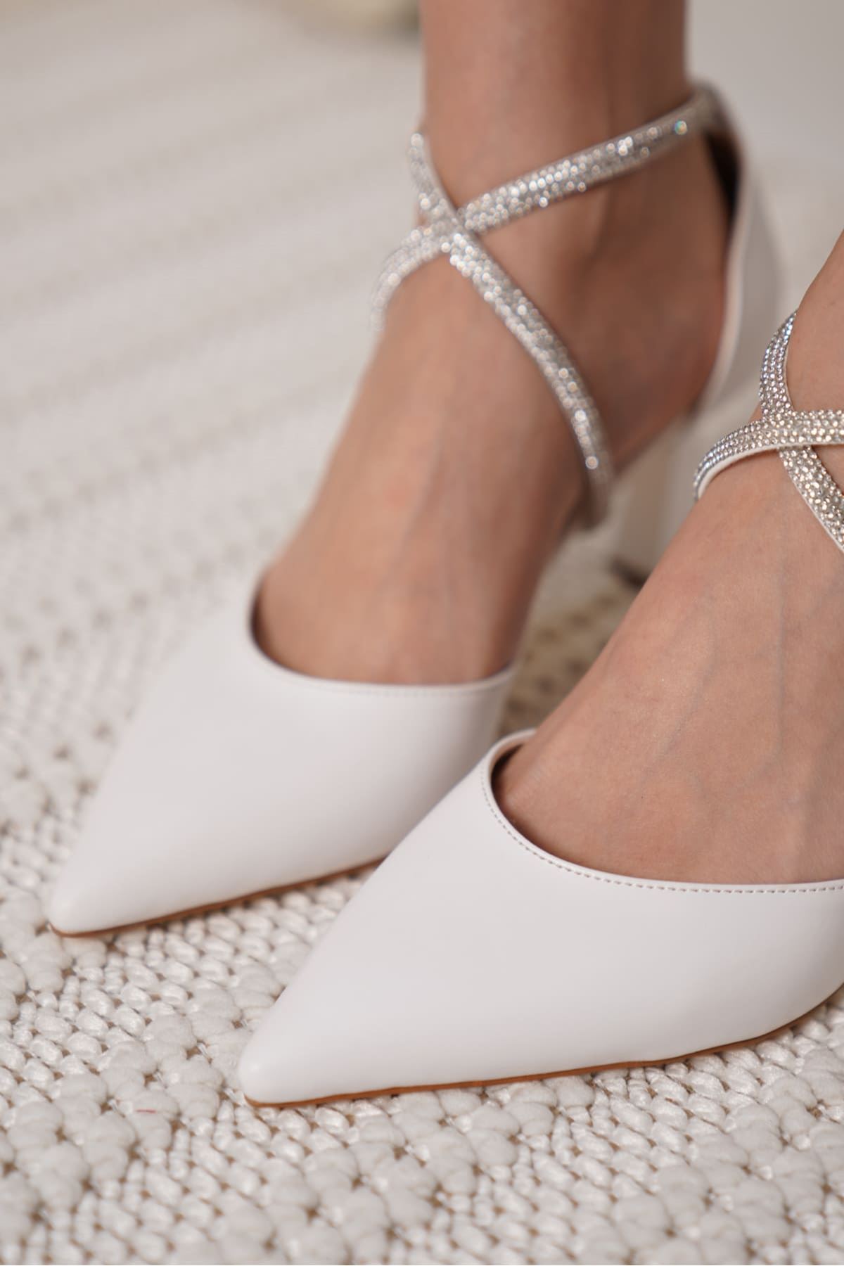 Fiona Taşlı Kadın Beyaz Topuklu Ayakkabı