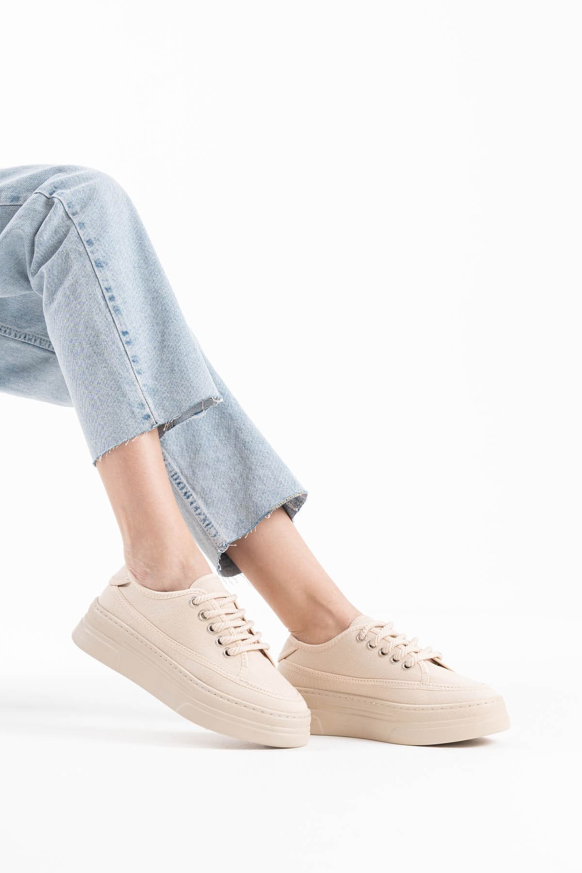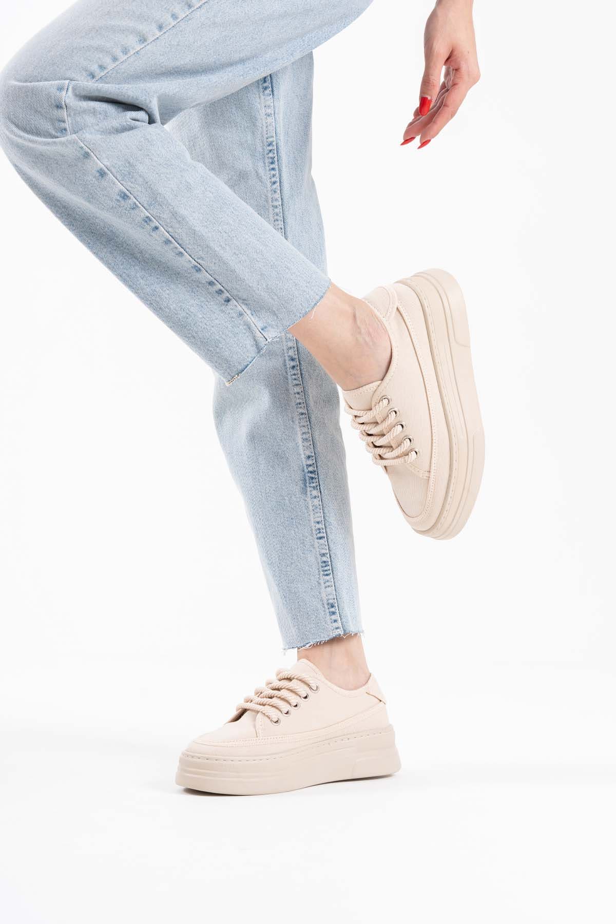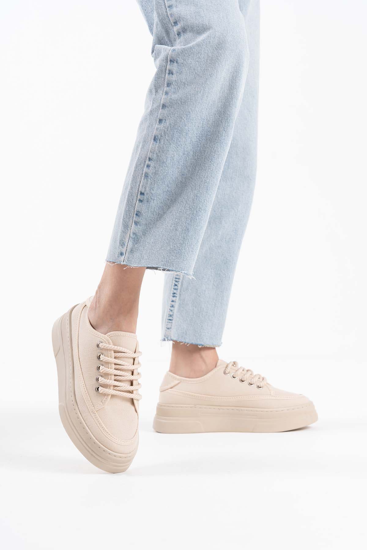 Glown Kadın Bej Keten Spor Ayakkabı