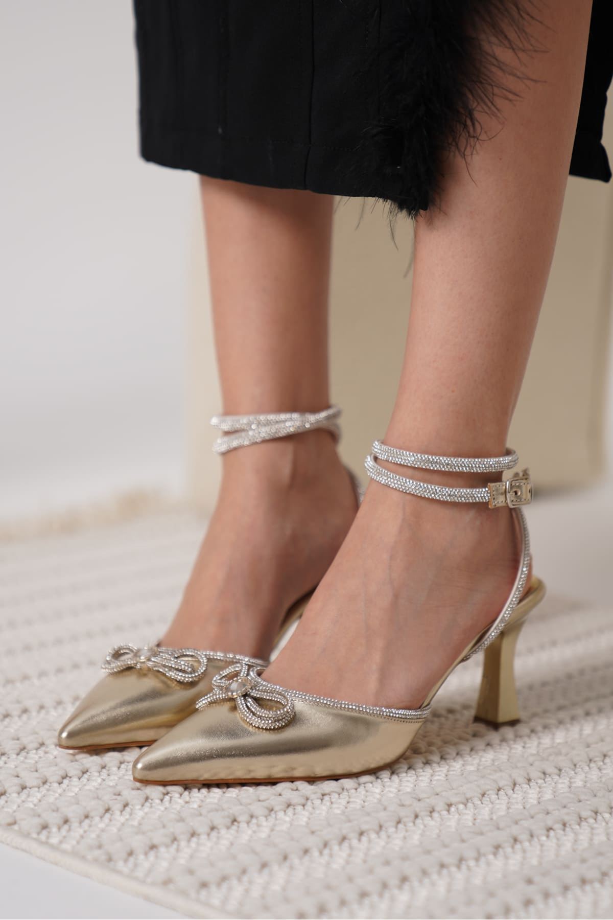 İrina Kadın Altın Taşlı Topuklu Ayakkabı