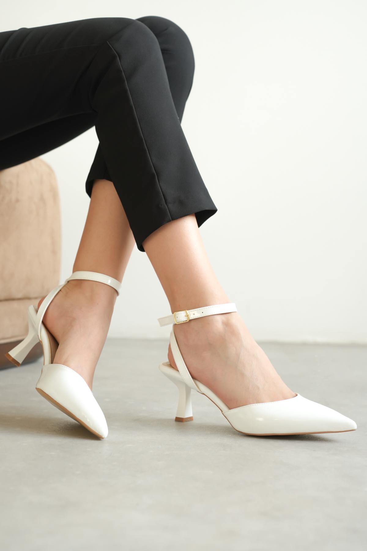 Kadın Beyaz Rugan Topuklu Ayakkabı TR03MS02B
