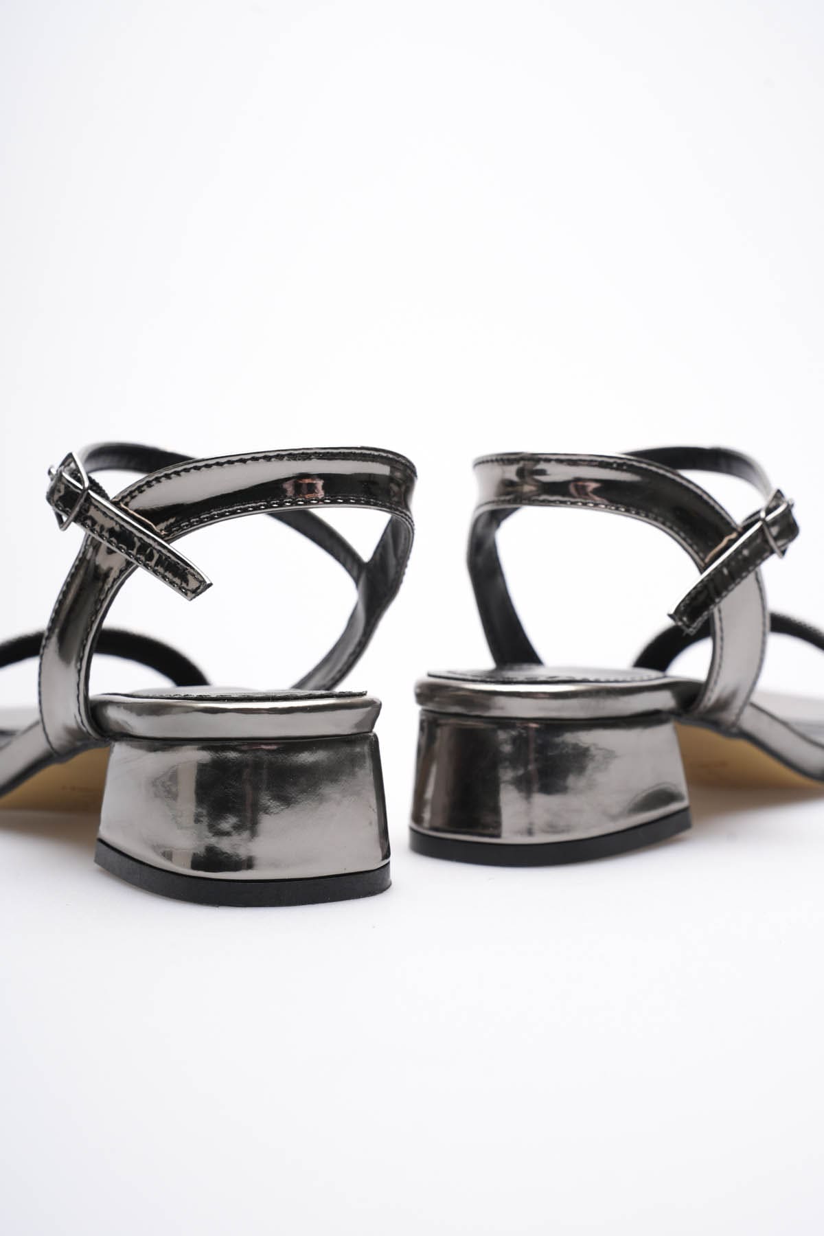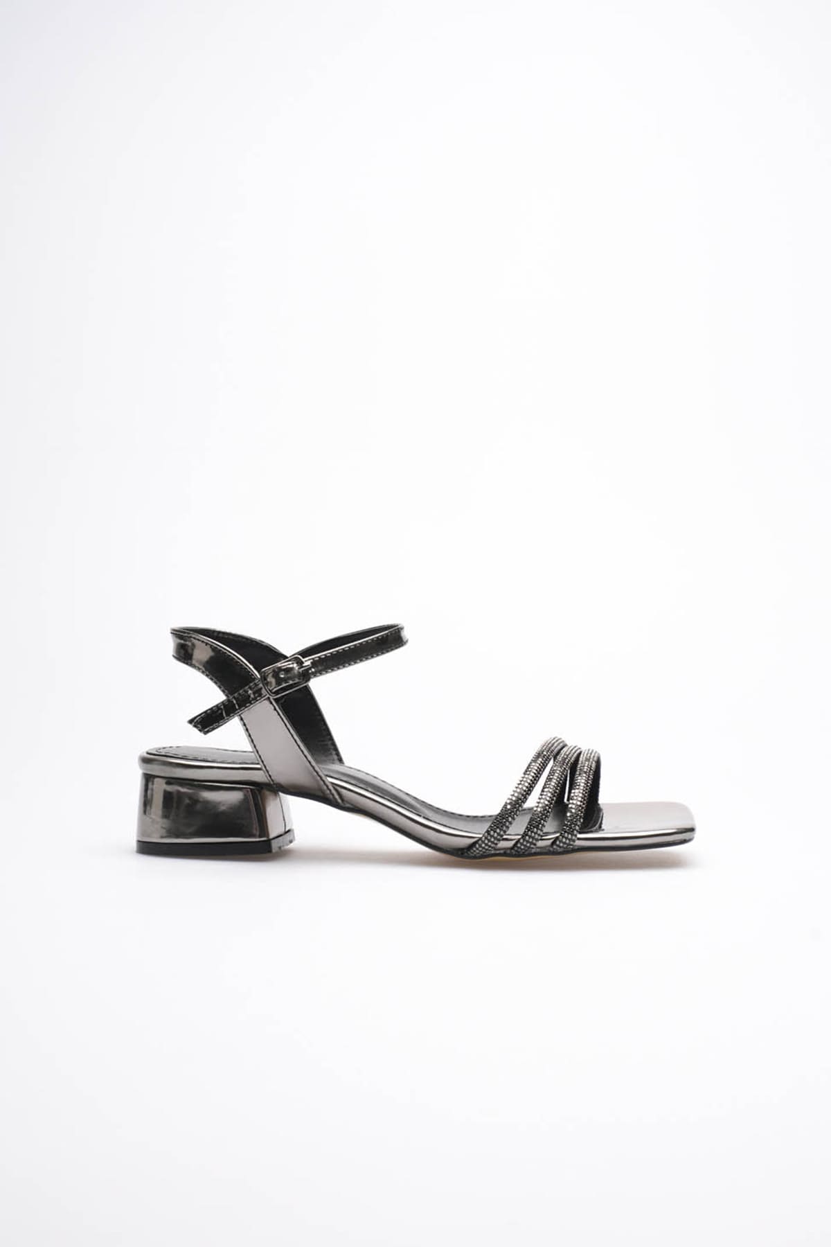 Kadın Platin Taş Detaylı Kalın Topuklu Şık Sandalet TR20MY26G