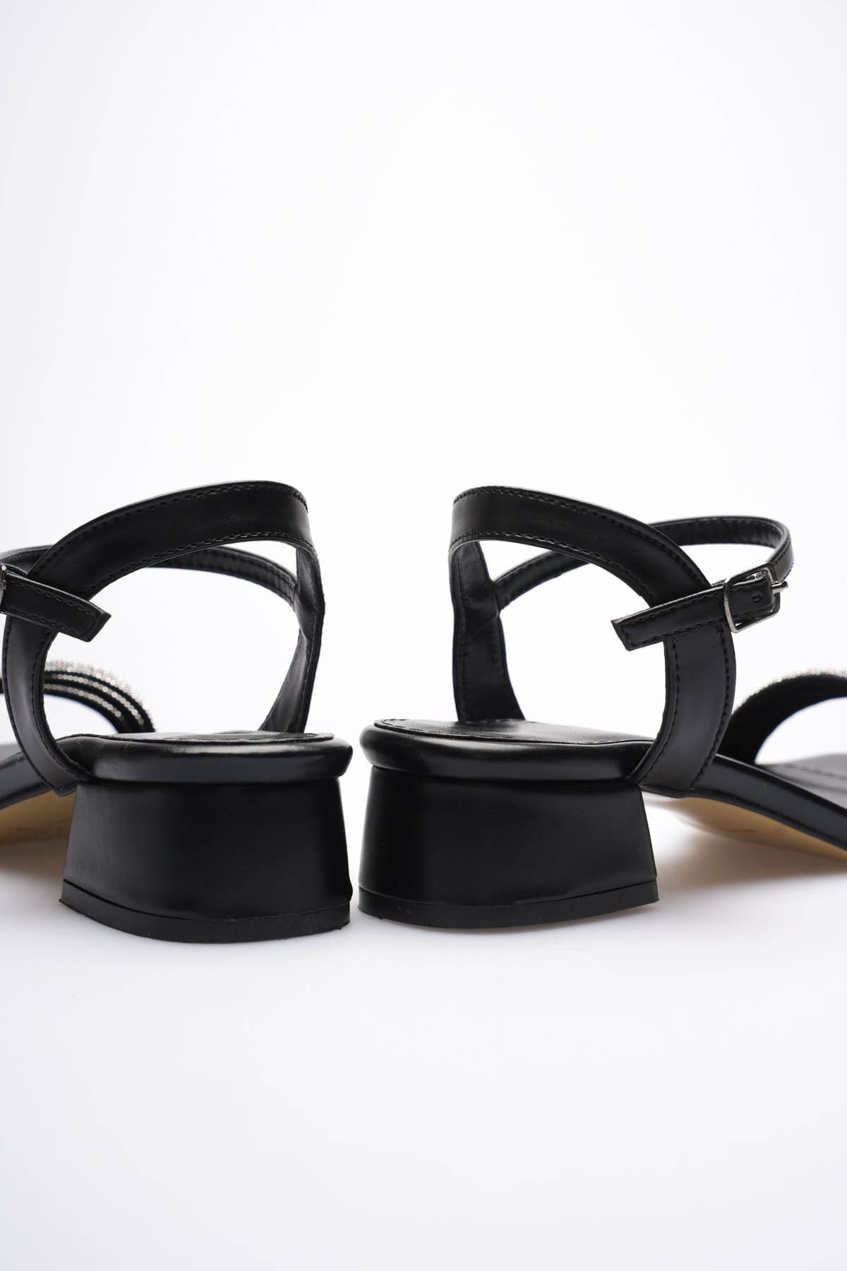 Kadın Siyah Taş Detaylı Kalın Topuklu Şık Sandalet TR20MY26A