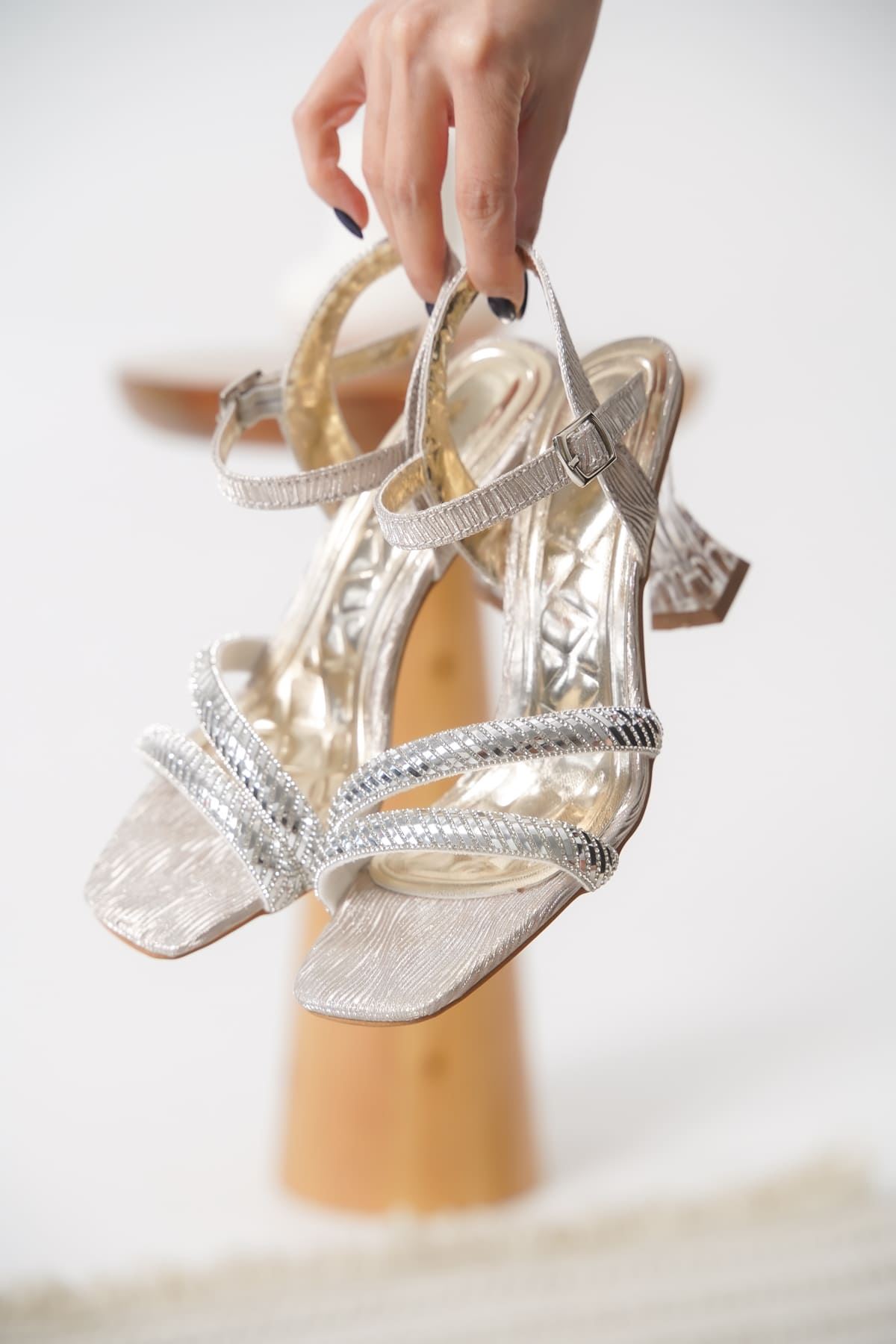 Kendy Altın Taşlı Kadın Topuklu Sandalet