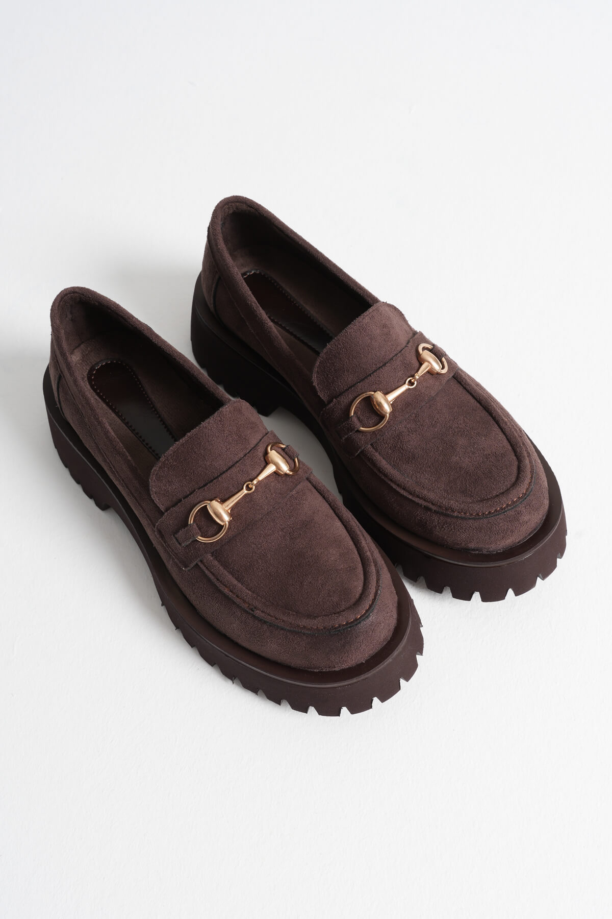 Toka Detaylı Acı Kahve Süet Günlük Loafer Ayakkabı TR10MS04E