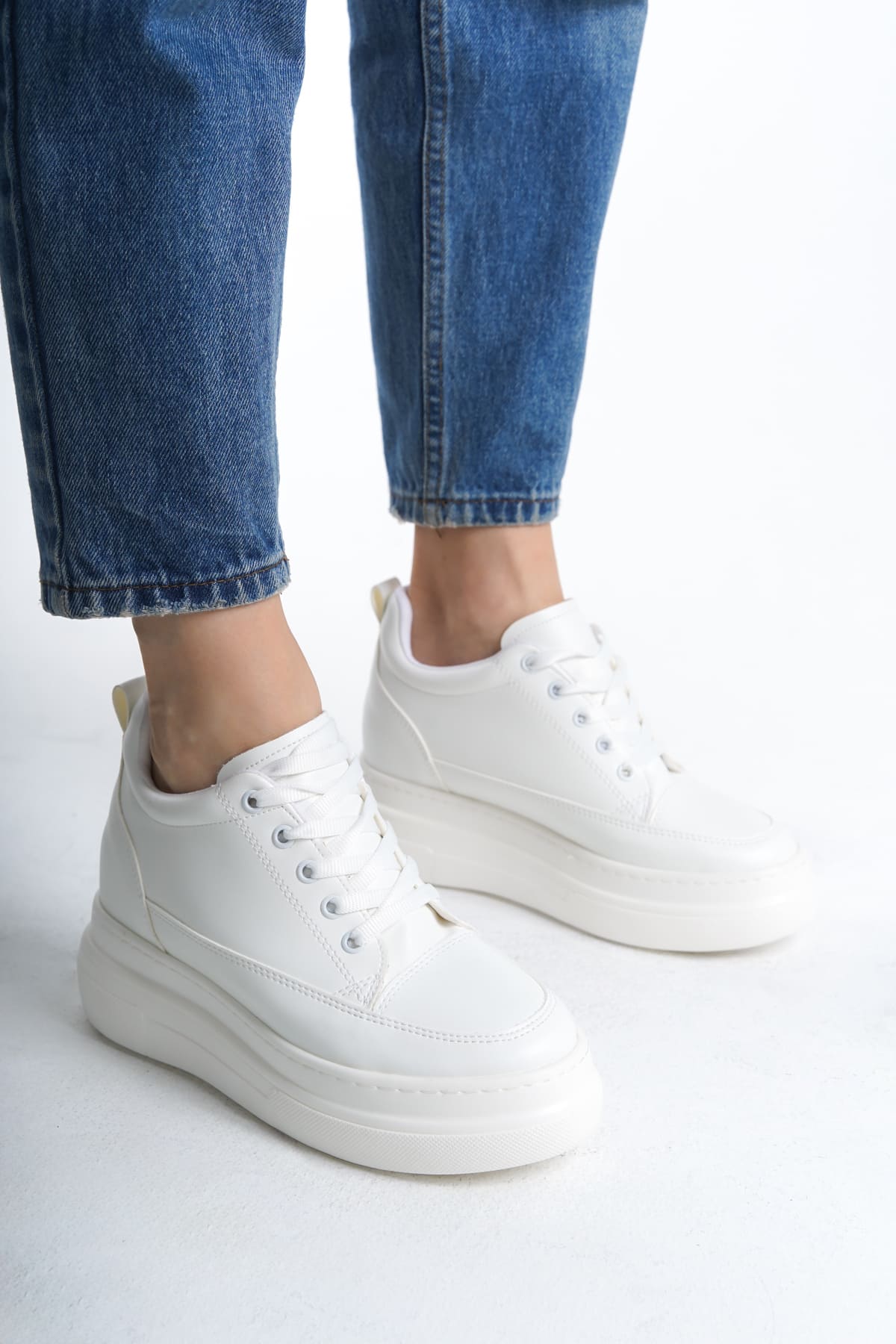 Lauren Kadın Gizli Topuk Mat Beyaz Spor Ayakkabı