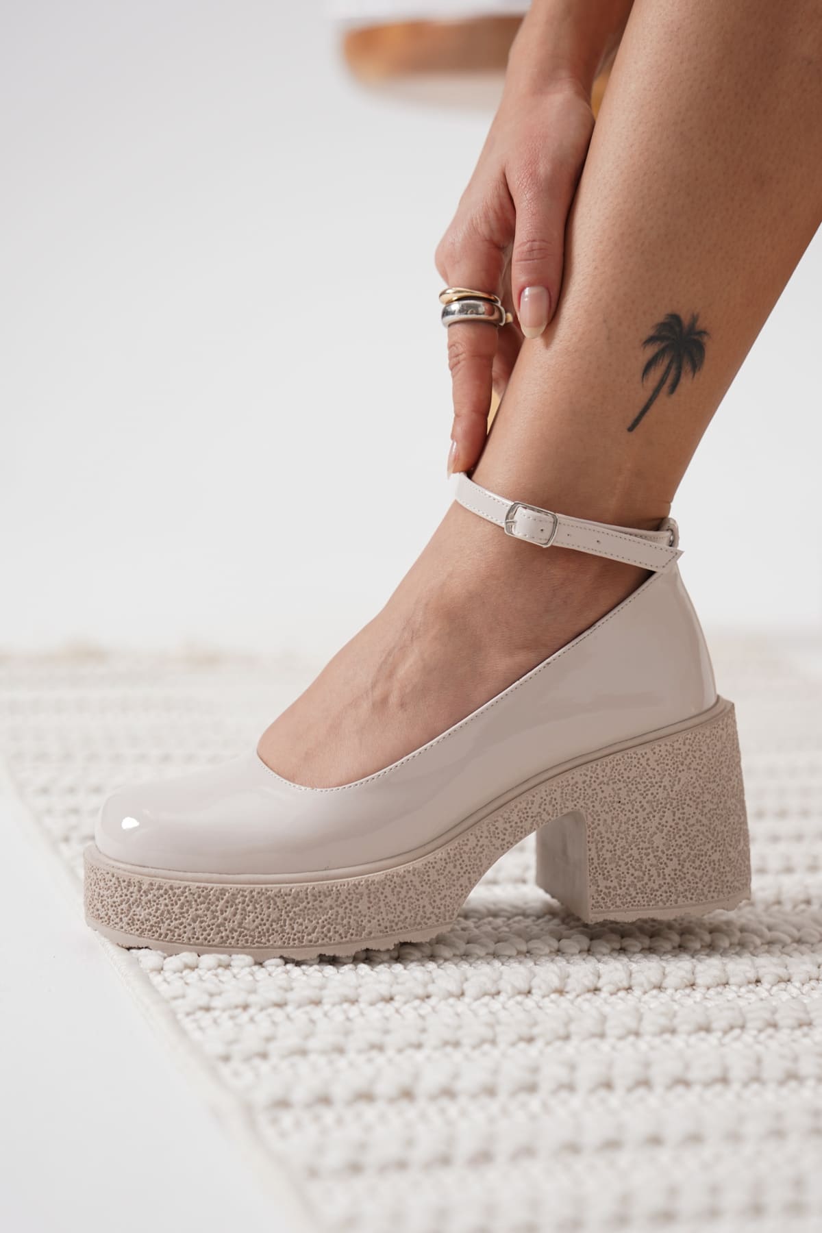 Kadın Bej Rugan Bilekten Baretli Günlük Ayakkabı