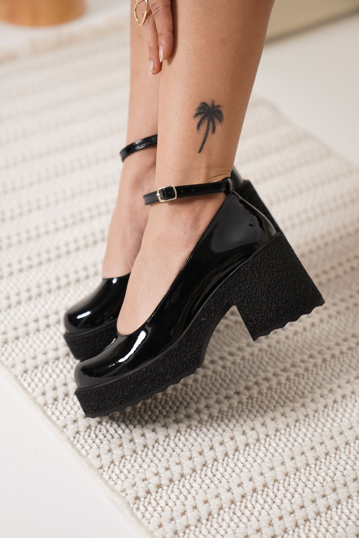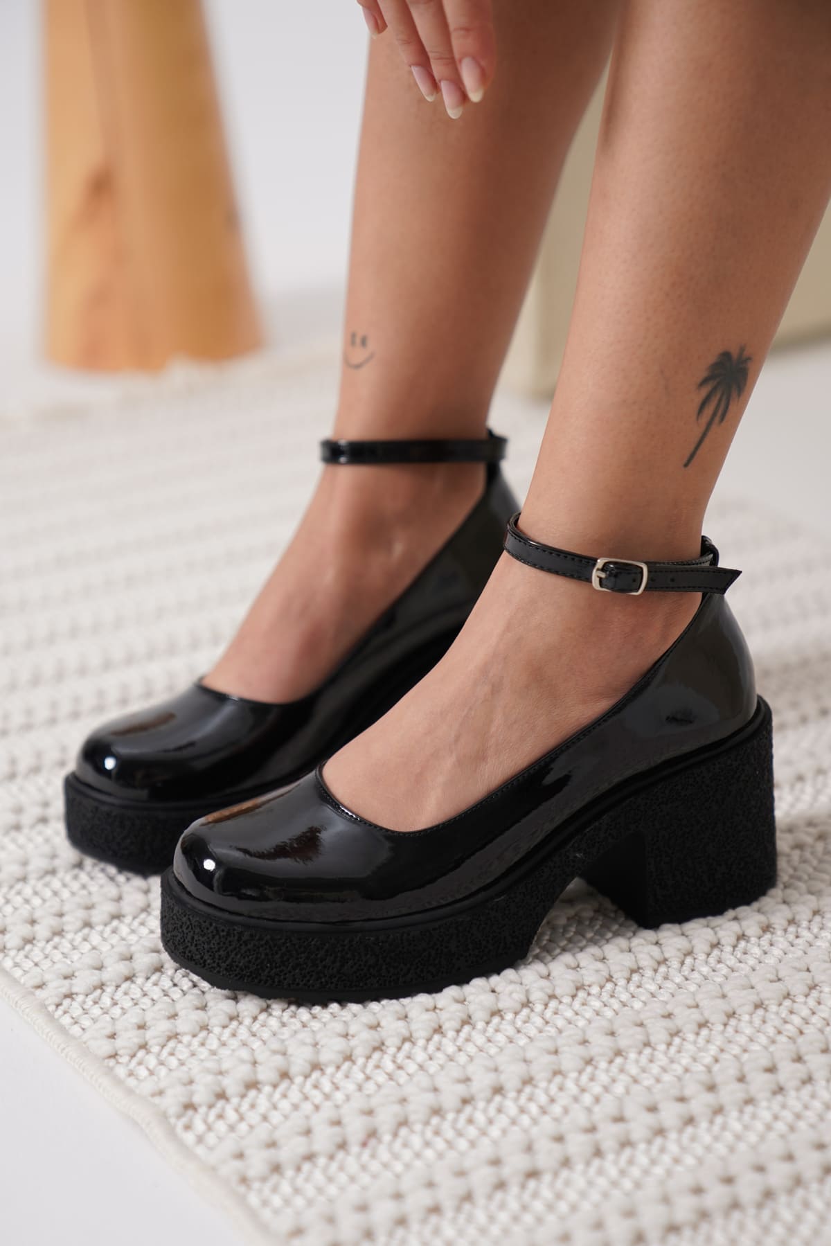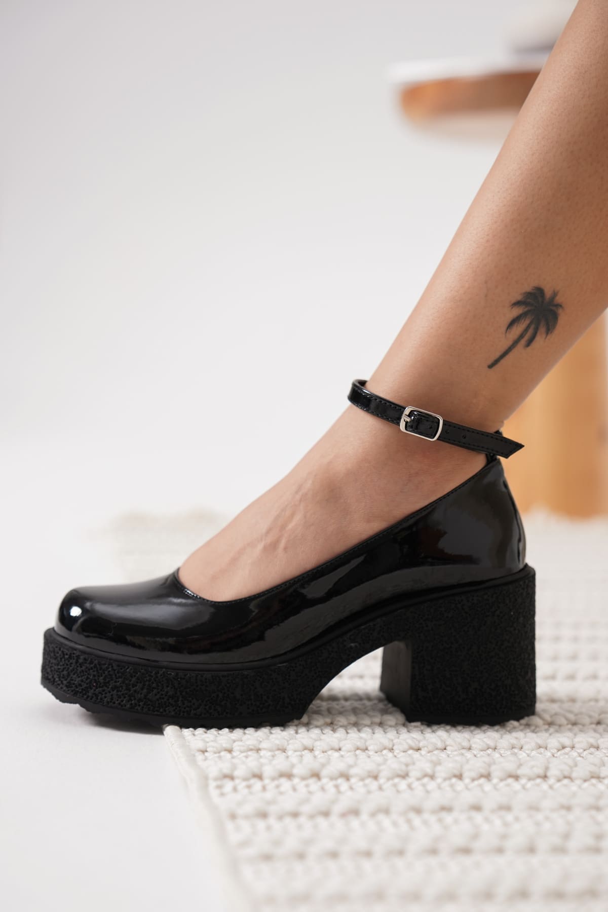 Kadın Siyah Rugan Bilekten Baretli Günlük Ayakkabı