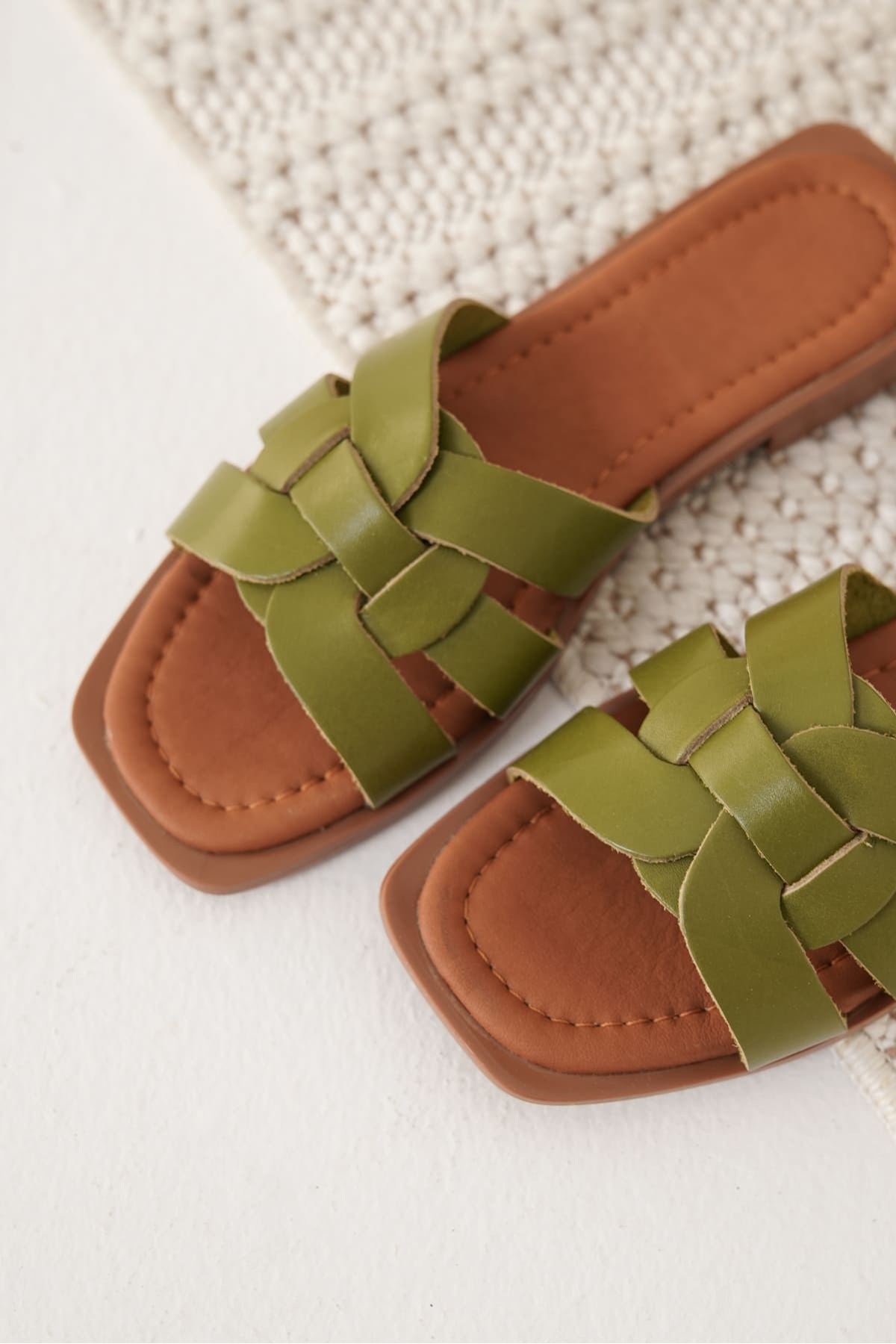 Marlen Haki Yeşili Hakiki Deri Terlik
