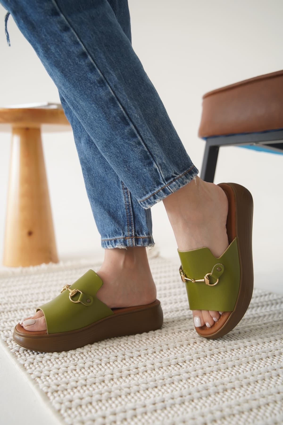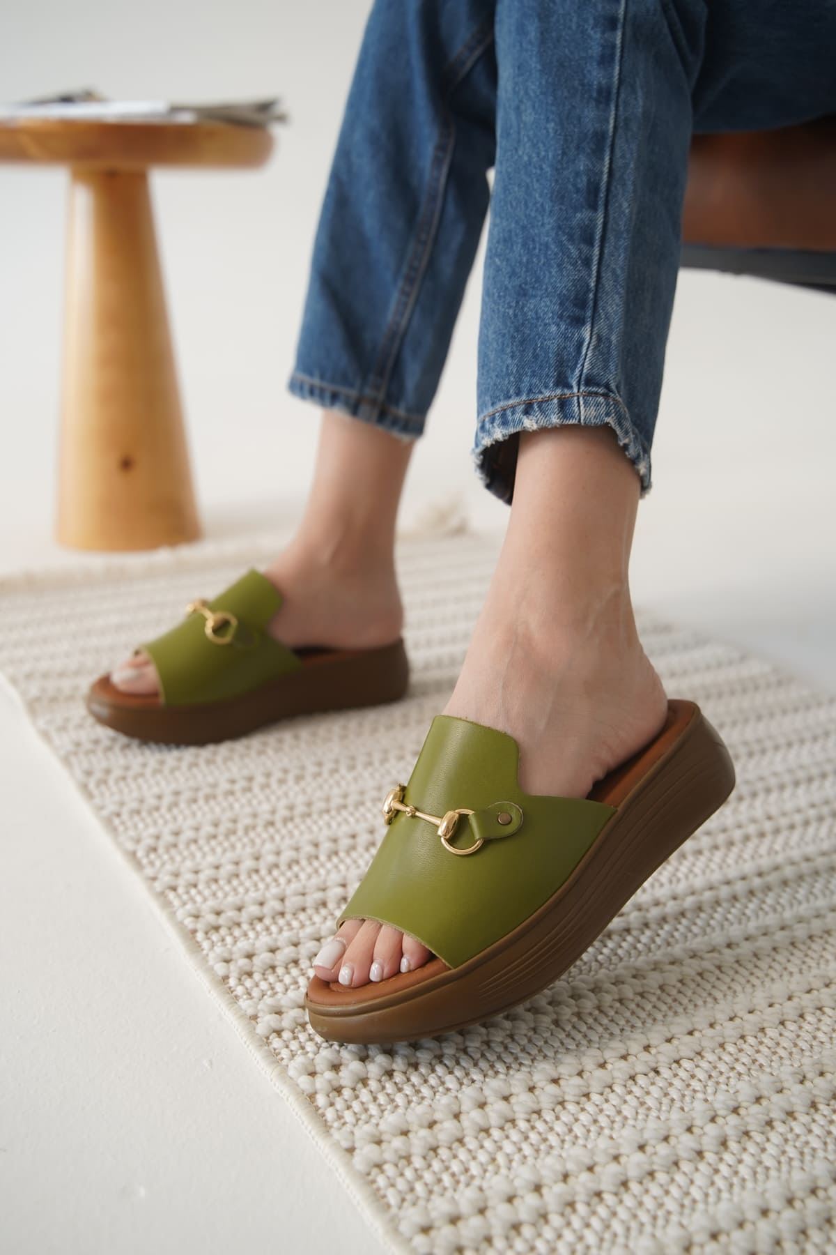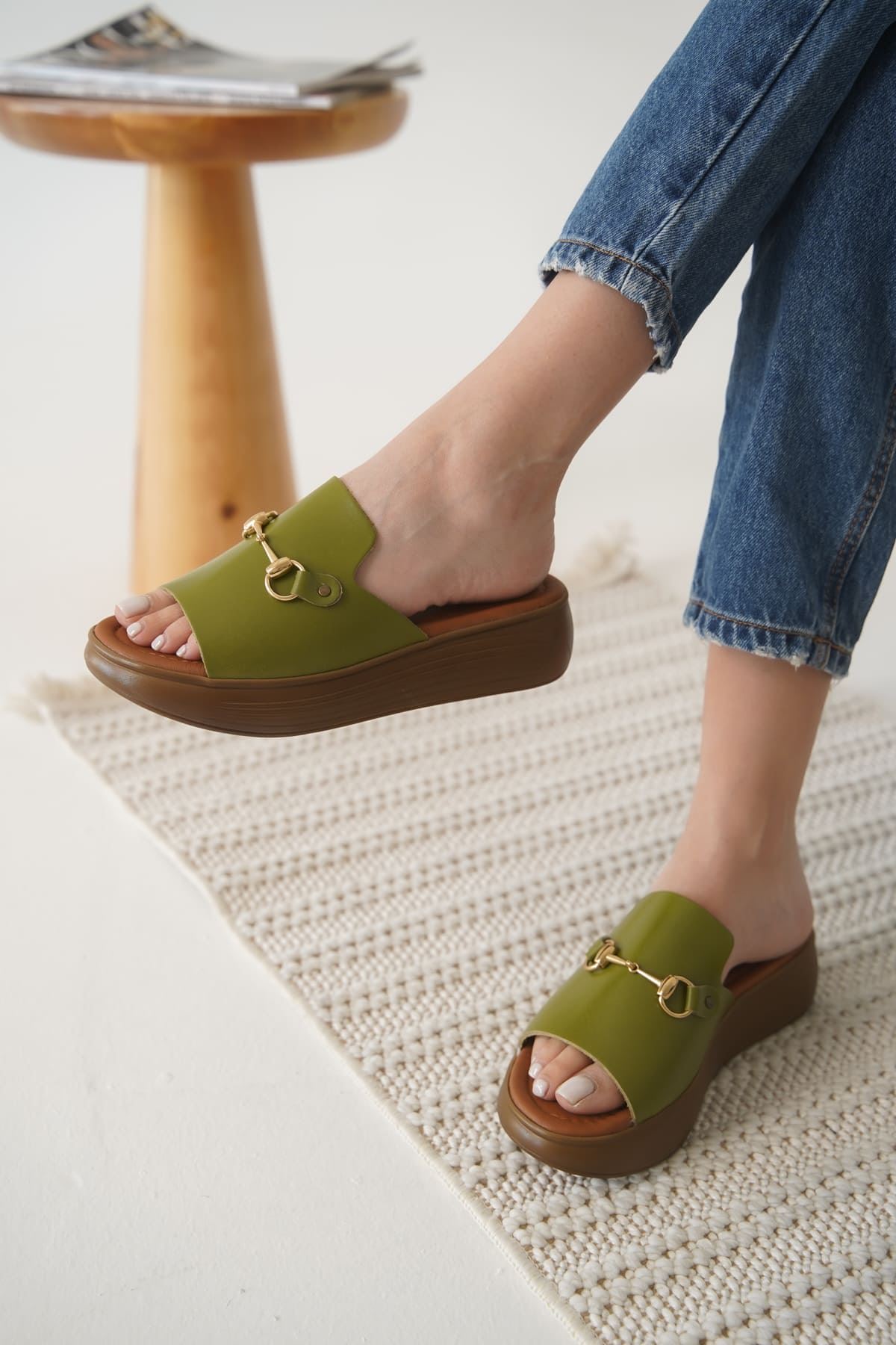 Haki Yeşili Hakiki Deri Terlik TR31MY62G