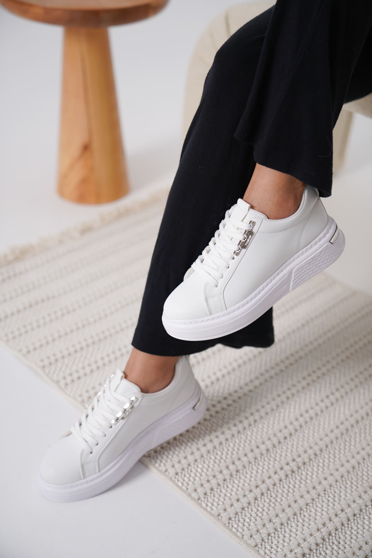 Nova Kadın Gümüş Detaylı Beyaz Sneaker