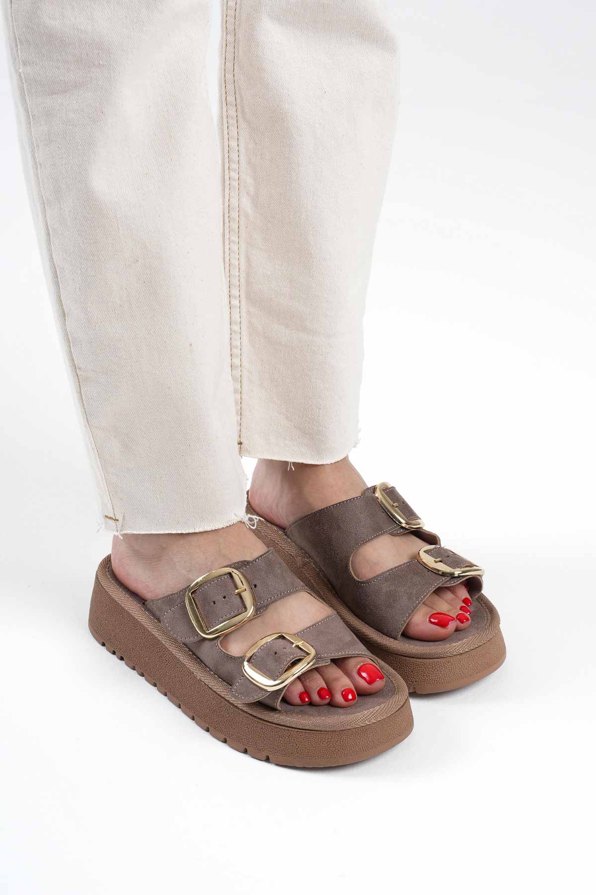 Süet Bej Taşlı Kadın Terlik TR35MY05B