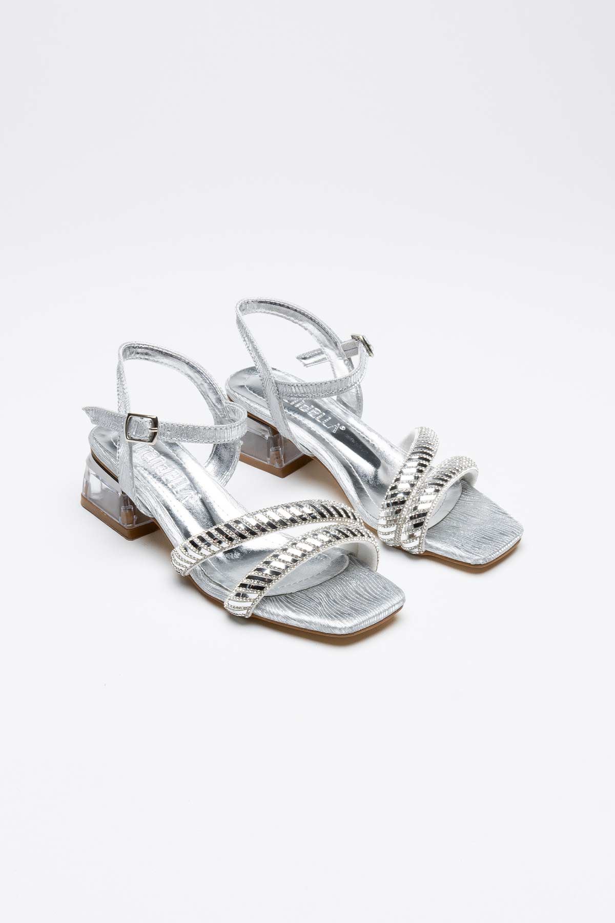 Rule Gümüş Taşlı Kadın Topuklu Sandalet
