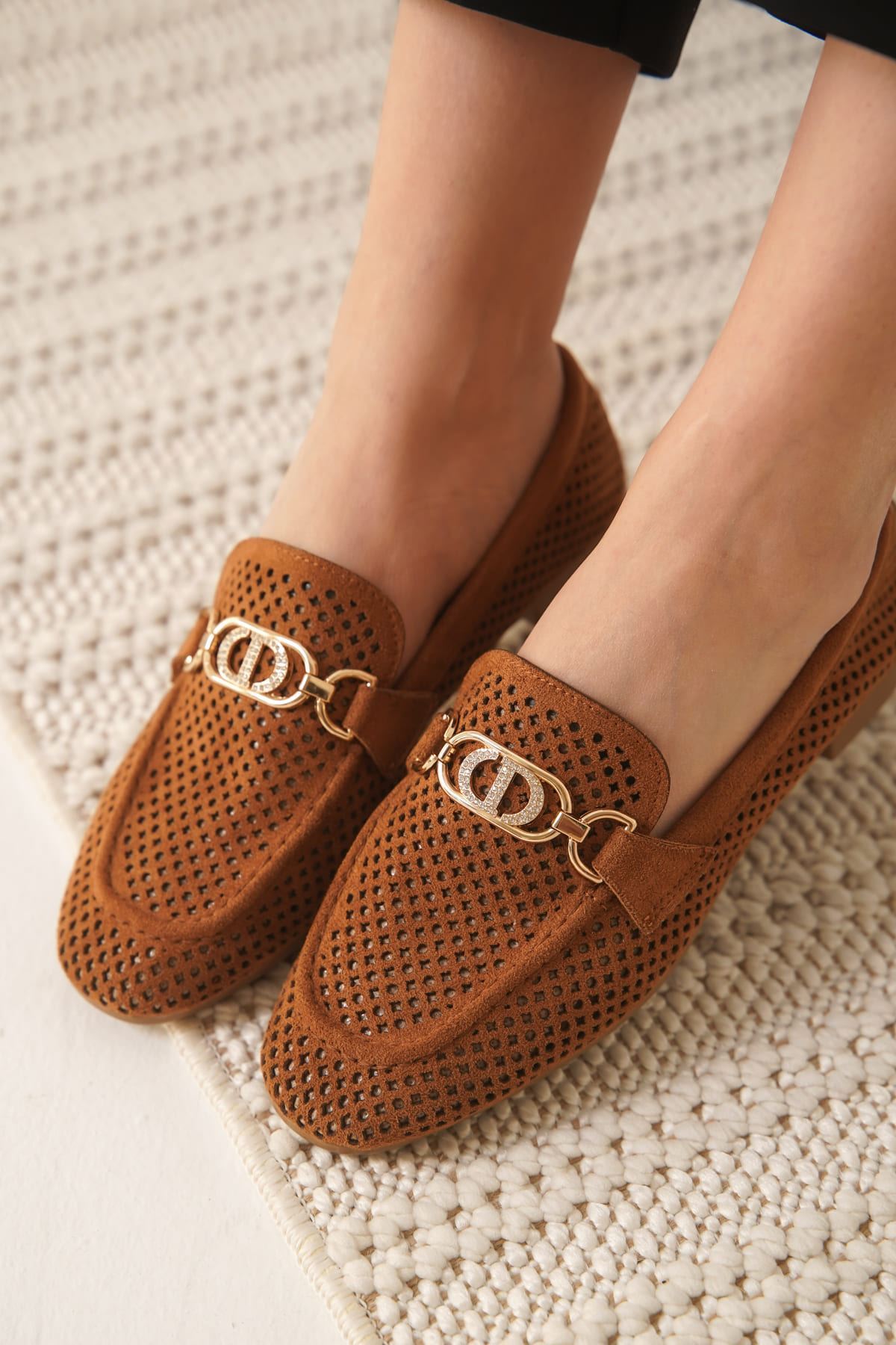 Toka Detaylı Bej Süet Günlük Loafer Ayakkabı TR10MS04D