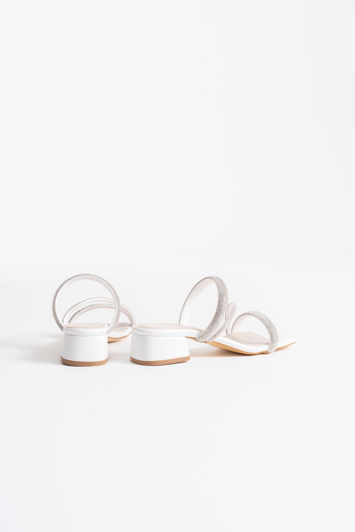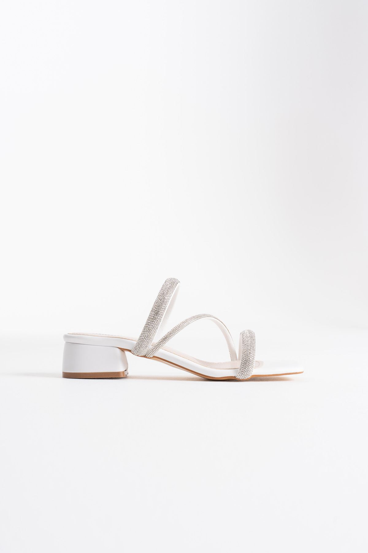 Tanya Beyaz Kadın Taşlı Terlik