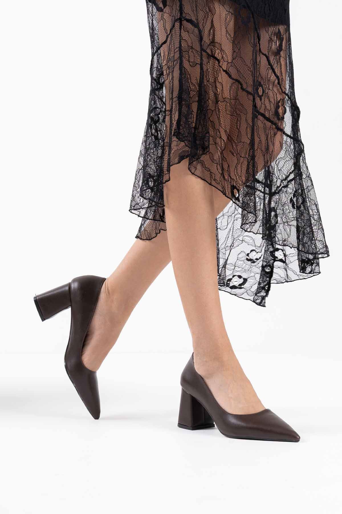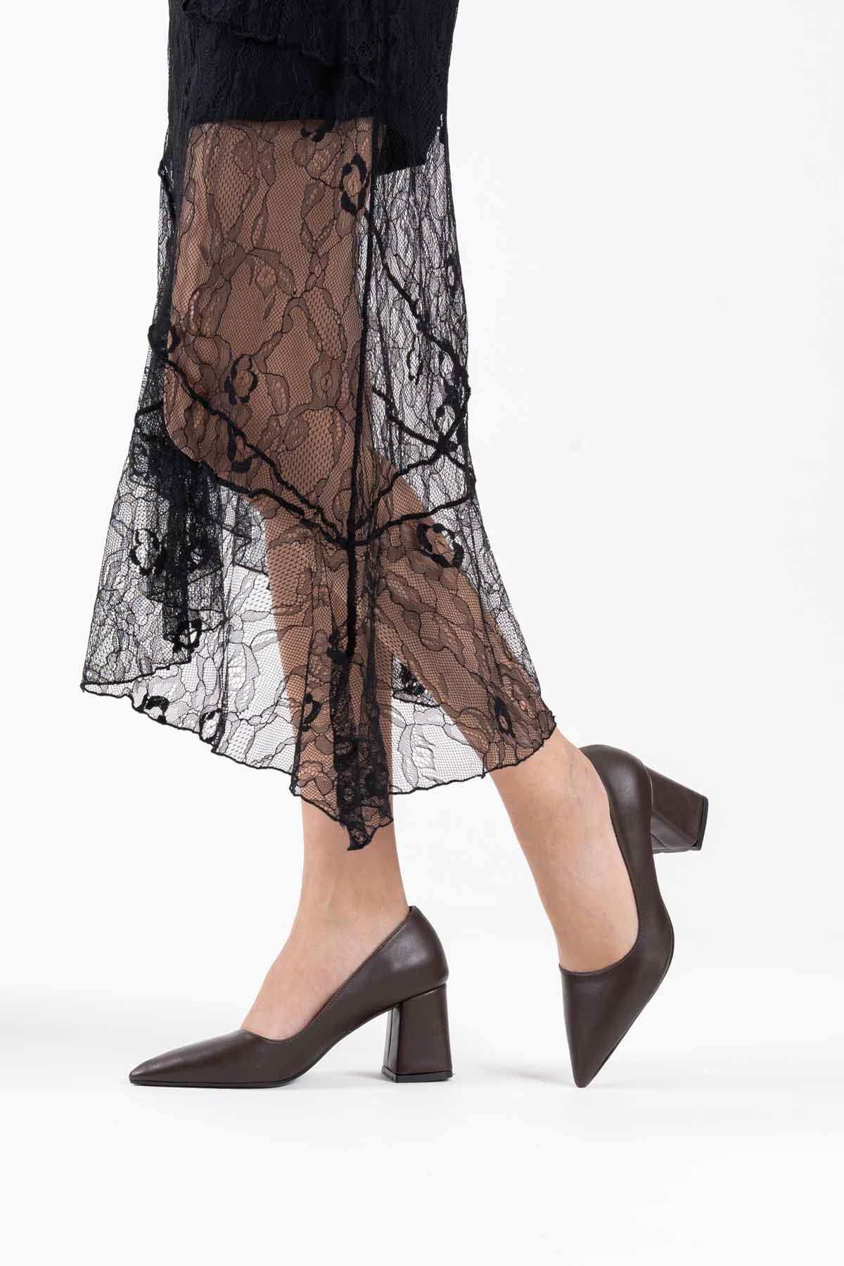 Valeria Acı Kahve Cilt Kadın Topuklu Ayakkabı
