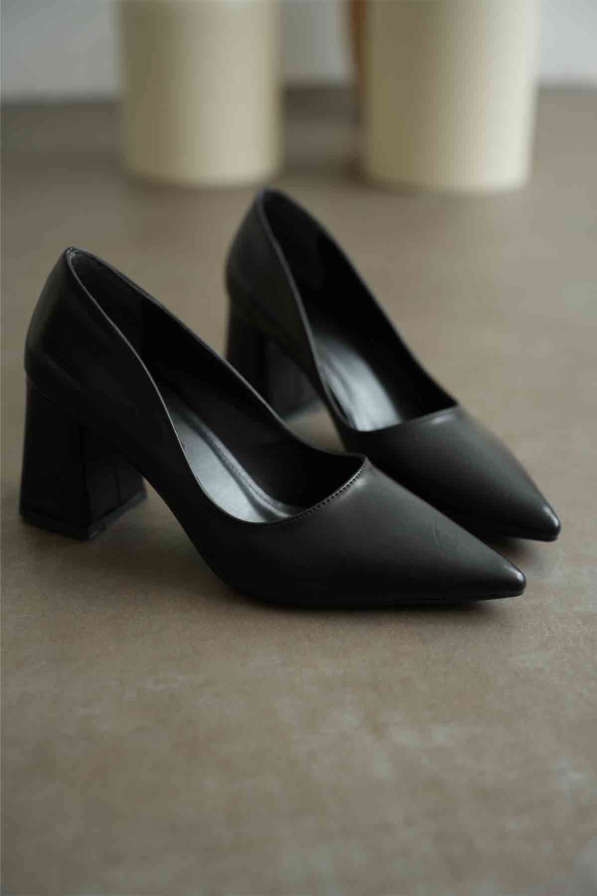 Valeria Siyah Cilt Kadın Topuklu Ayakkabı
