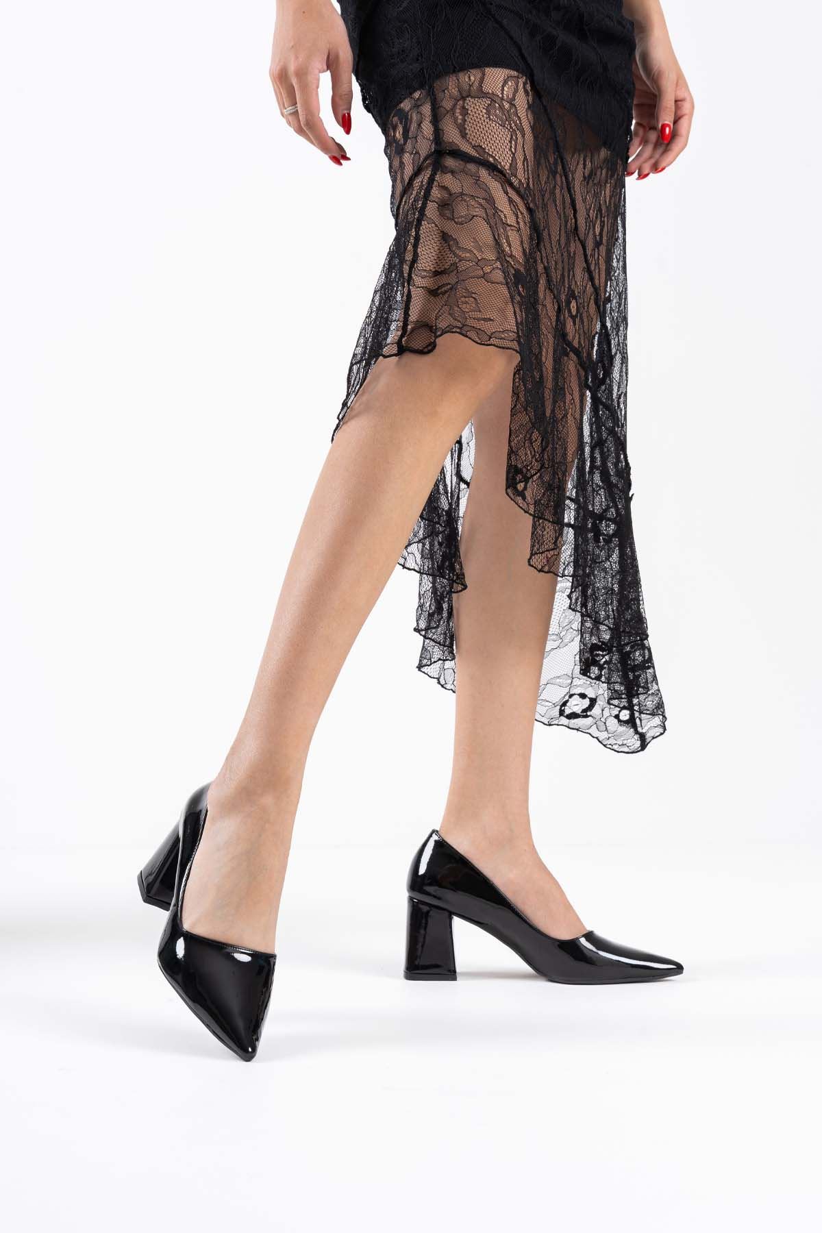 Valeria Siyah Rugan Kadın Topuklu Ayakkabı