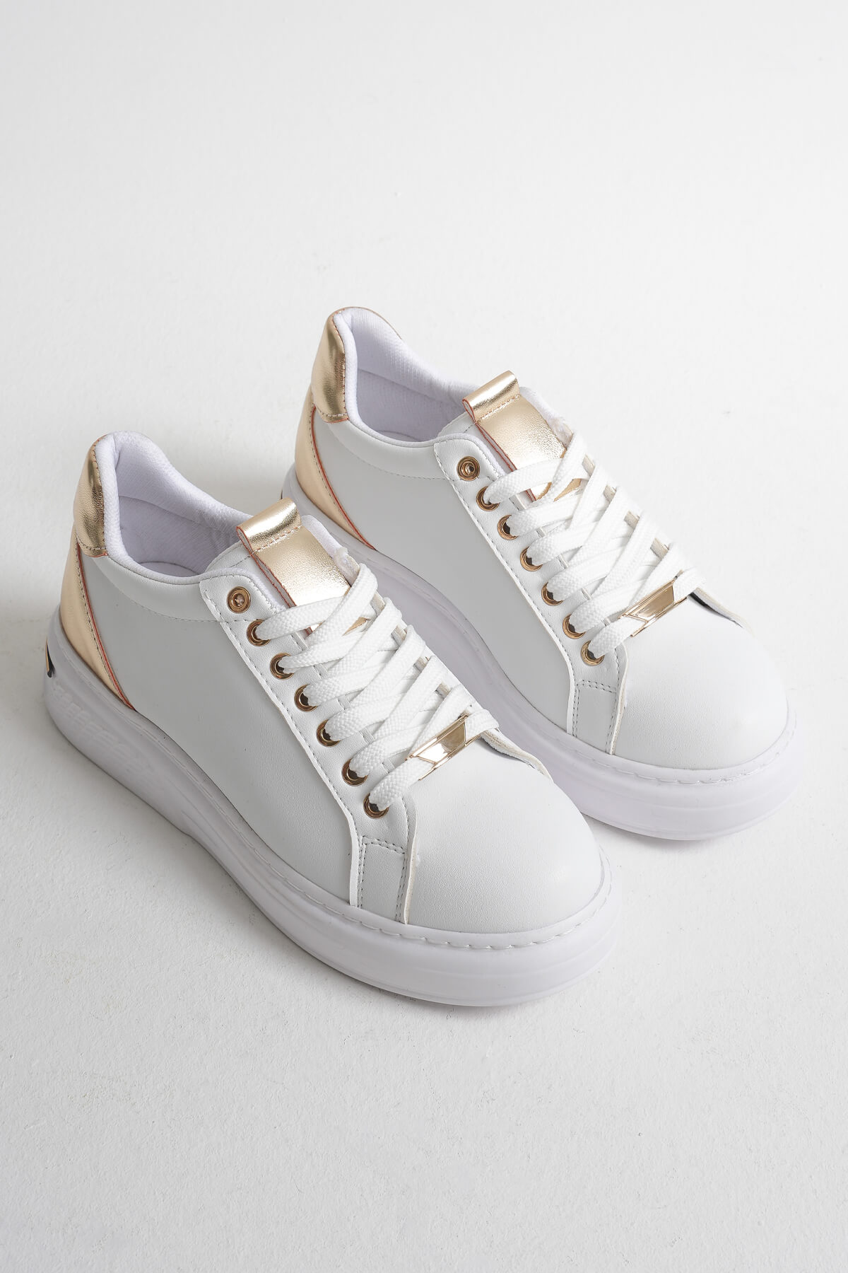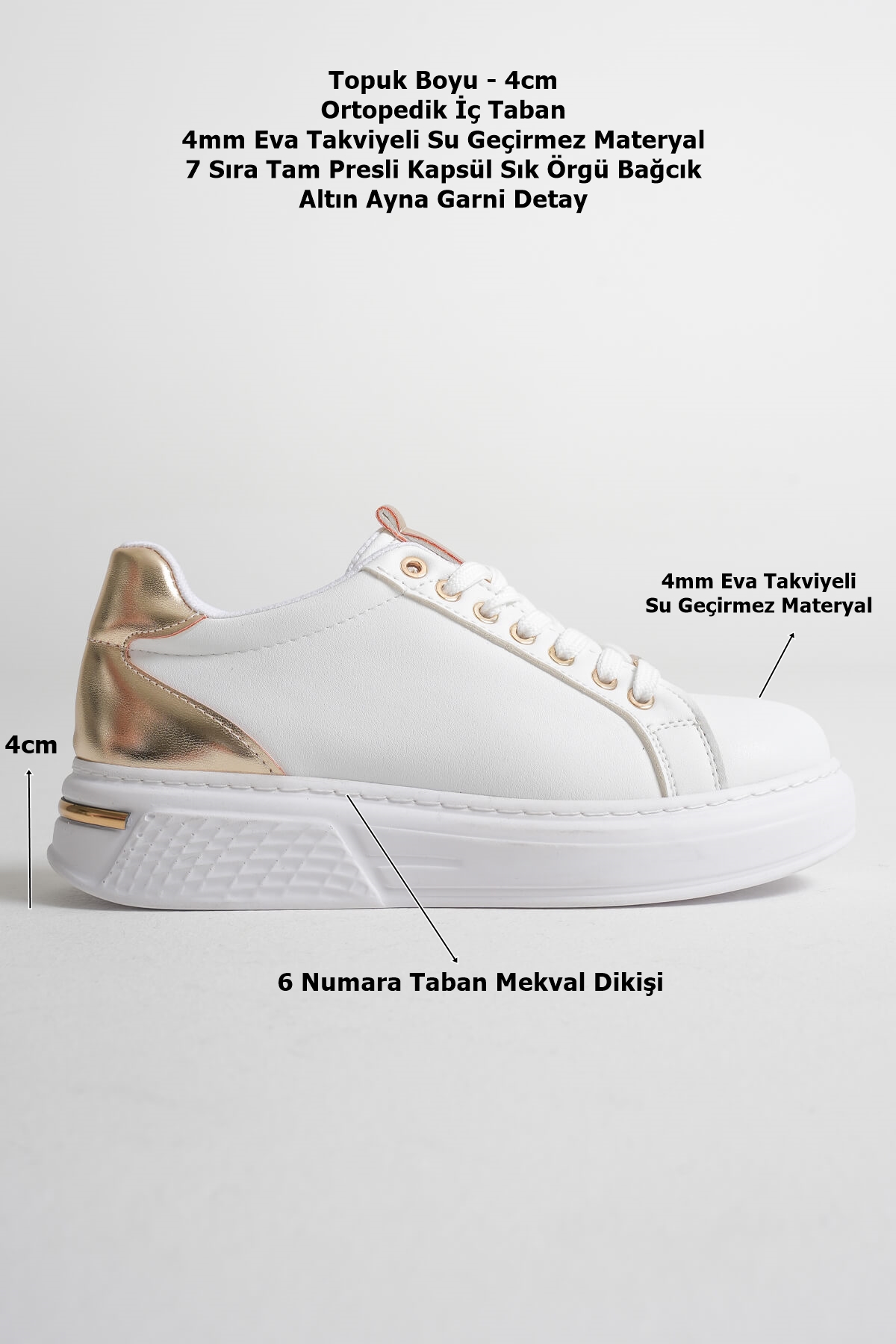 VEGA – Altın Ayna Garnili Beyaz Kadın Sneaker